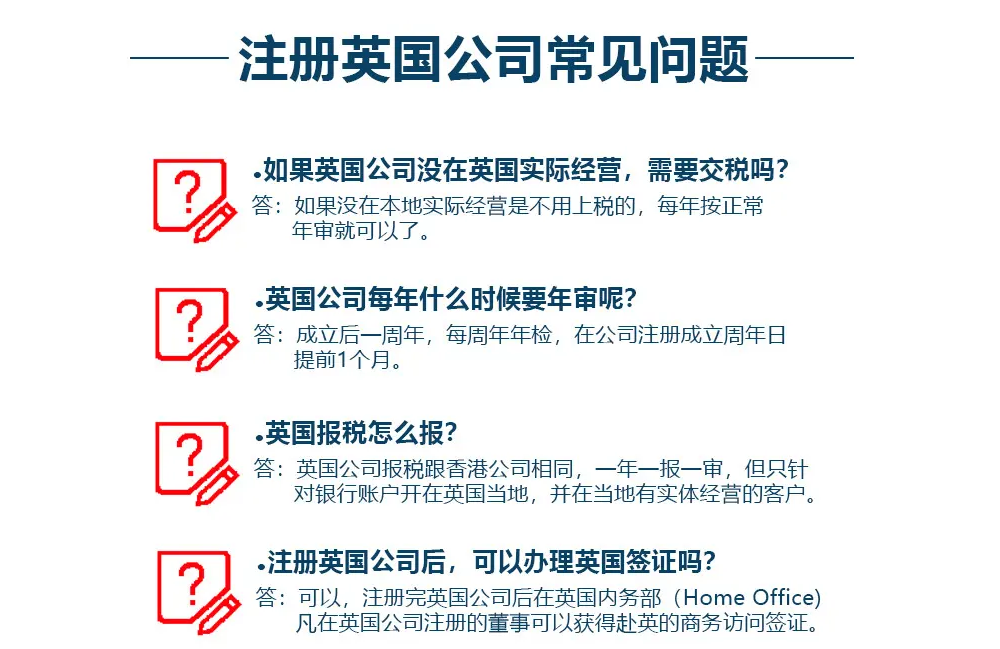 除了以上注冊(cè)英國(guó)公司的資料和流程,英國(guó)公司注冊(cè)后,還需要進(jìn)行年審。不按時(shí)年審的,要罰款,或者先發(fā)警告文書。如果公司在90天內(nèi)未能及時(shí)辦理,公司將收到公司已注銷的通知,沒(méi)有任何反駁的機(jī)會(huì),被強(qiáng)制注銷的公司法人將被列入黑名單,影響誠(chéng)信記錄。以上是注冊(cè)英國(guó)公司的信息、流程等細(xì)節(jié)。